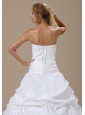 This long wedding gown is chic and fashionable. A strapless wedding dress in luxurious taffeta is hard to find, but this amazing long strapless is at a price you can afford. Sweet heart neckline and ruched bodice add sexuality and elegance to this neoteric style. Appliques cover the sweetheart neckline. What's more, a lace up corset style closure in the back secures the dress in place. If you want to be the spotlight,you will never miss this perfect gown.