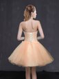 Appliques Homecoming Dress Peach Lace Up Sleeveless Mini Length
