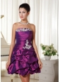 Home >  Special Occasion Dresses >  Homecoming Dresses > Appliques Lace-up Strapless With Ruched Bodic Homecoming Dress Eggplant Purple