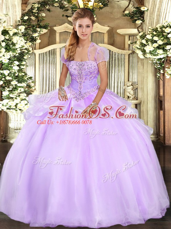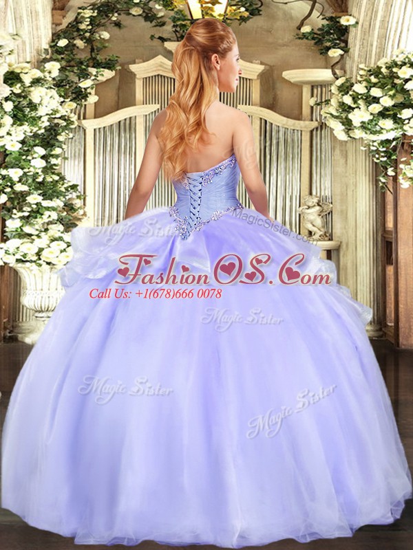 Appliques Quince Ball Gowns Lavender Lace Up Sleeveless Floor Length