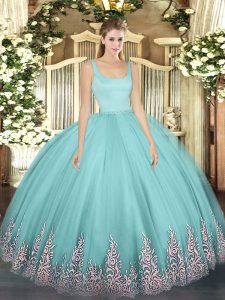 Appliques Quinceanera Gown Aqua Blue Zipper Sleeveless Floor Length