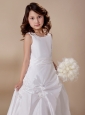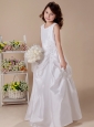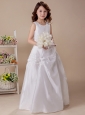 Appliques Scoop-neck Taffeta White 2013 Custom Made Wedding Party Flower Girl Dress