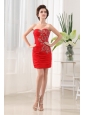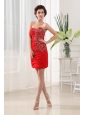 Home >  Prom Dresses >  Popular Prom Dresses > Appliques Sweetheart Chiffon Column Mini-length Red Prom Dress