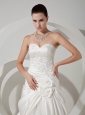 Appliques With Beading Decorate Bodice Hand Made Flower Taffeta and Tulle Wedding Dress For 2013