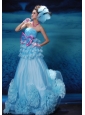 Appliques With Beading Decorate Bust Bowknot Ruffled Layers Strapless Floor-length Aqua Blue 2013 Prom / Evening Dress