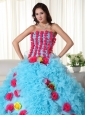 Aqua Ball Gown Strapless Floor-length Organza Beading Quinceanera Dress