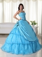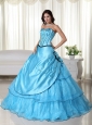 Home >  Quinceanera Dresses >  Pretty Quinceanera Dresses > Aqua Ball Gown Strapless Floor-length Organza Beading Quinceanera Dress