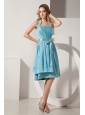Home >  Bridesmaid Dresses >  Simple Bridesmaid Dresses > Aqua Blue A-line Halter Knee-length Bridesmaid Dress Taffeta Ruch and Bow