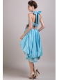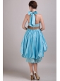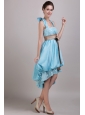 Home >  Prom Dresses >  Short Prom Dresses > Aqua Blue A-Line / Princess Halter High-low Taffeta Appliques and Bowknot Prom / Homecoming Dress