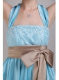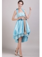 Aqua Blue A-Line / Princess Halter High-low Taffeta Appliques and Bowknot Prom / Homecoming Dress