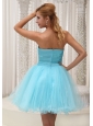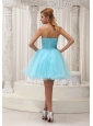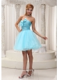 Aqua Blue A-line Prom Dress For 2013 Taffeta and Organza Ruched Bodice Mini-length