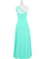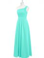 Aqua Blue A-line Ruching Prom Party Dress Zipper Chiffon Sleeveless Floor Length
