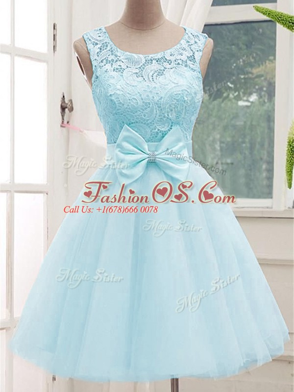 Aqua Blue A-line Scoop Sleeveless Tulle Knee Length Lace Up Lace Quinceanera Court Dresses