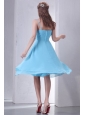 Aqua Blue A-line Spaghetti Straps Knee-length Prom Dress with Sash