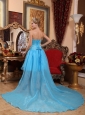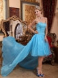 Home >  Prom Dresses >  Cheap Prom Dresses > Aqua Blue A-line Sweetheart High-low Taffeta and Organza Beading Prom Dress