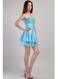 Aqua Blue A-line Sweetheart Mini-length Taffeta Beading and Sequins Prom / Cocktail Dress