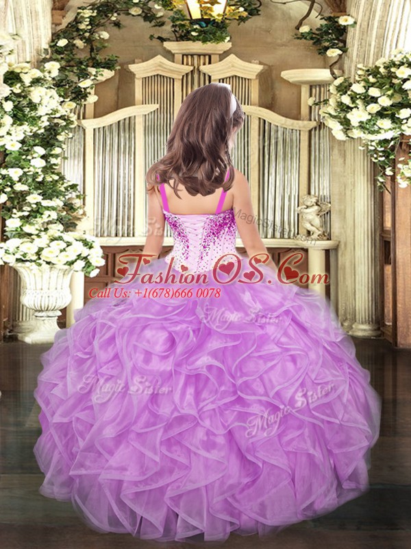 Aqua Blue and Apple Green Straps Lace Up Beading and Ruffles Little Girl Pageant Gowns Sleeveless