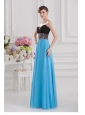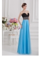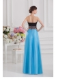 Aqua Blue and Black Empire Sweetheart Tulle Prom Dress with Beading