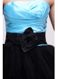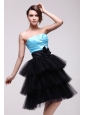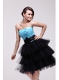 Home >  Prom Dresses >  Fashionable Prom Dresses > Aqua Blue and Black Short Prom Dress with Flowers and Layers