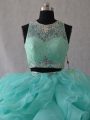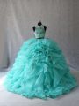 Aqua Blue Ball Gowns Beading and Ruffles Quinceanera Dresses Zipper Organza Sleeveless