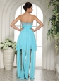 Aqua Blue Beaded Empire Sweetheart 2013 High-low Prom Dress For Custom Made