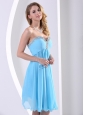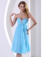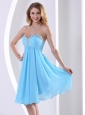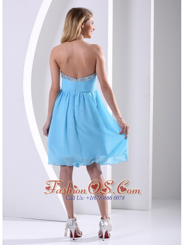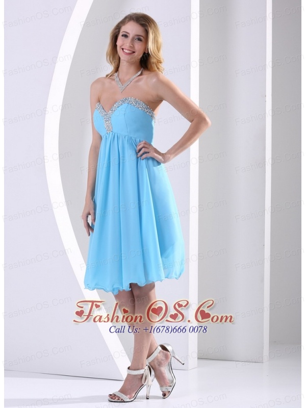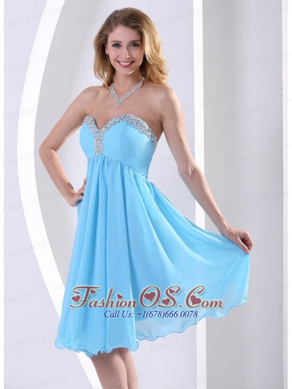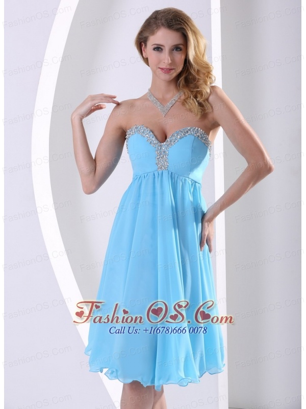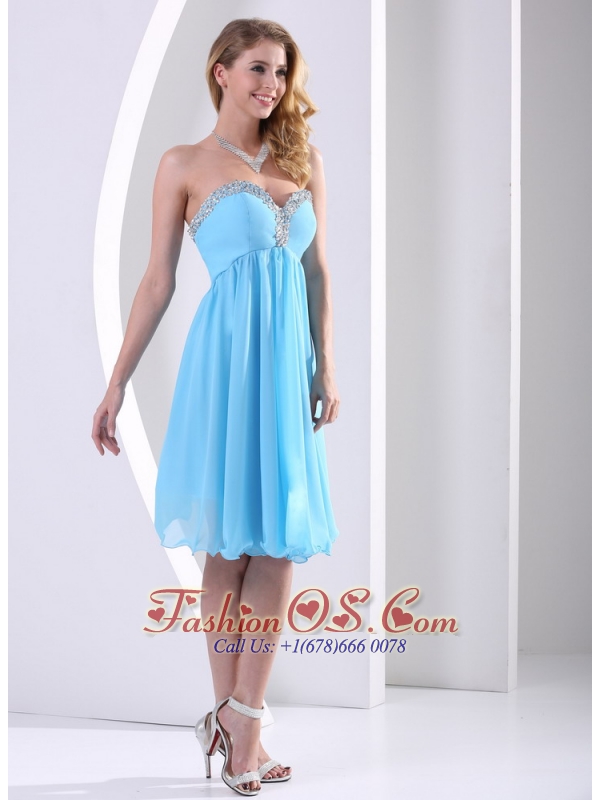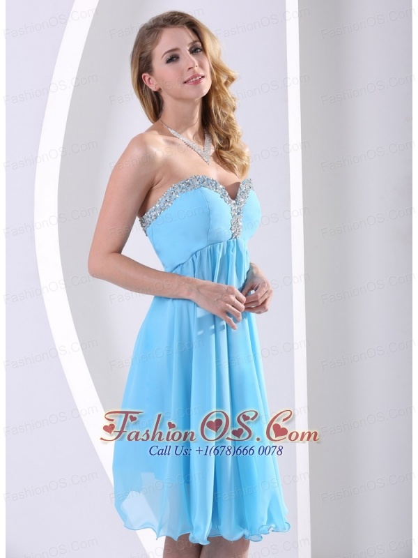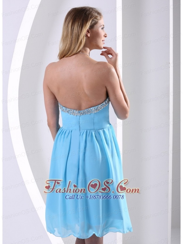 Aqua Blue Chiffon Sweetheart Beaded 2013 Modest Dress A-line Knee-length