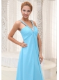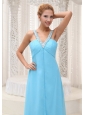 Aqua Blue Chiffon V-neck Beaded Long Dama Dress