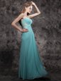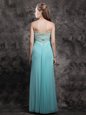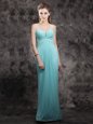 Home >  Prom Dresses >  Modest Prom Dresses > Aqua Blue Chiffon Zipper Homecoming Dress Sleeveless Floor Length Appliques