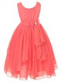 Home >  Special Occasion Dresses >  New Style Little Girl Pageant Dresses > Aqua Blue Chiffon Zipper Scoop Sleeveless Asymmetrical Kids Pageant Dress Ruffles and Bowknot