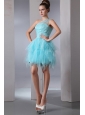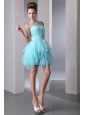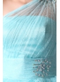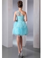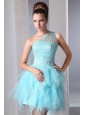 Aqua Blue Column One Shoulder Short Prom Dress Asymmetrical Organza Beading