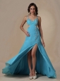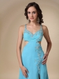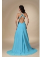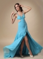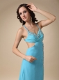 Home >  Prom Dresses >  Sexy Prom Dresses > Aqua Blue Column Spaghetti Straps Brush Train Chiffon and Elastic Woven Satin Beading Prom Dress