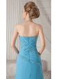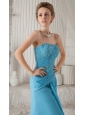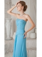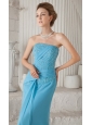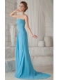 Home >  Prom Dresses >  Beautiful Prom Dresses > Aqua Blue Column Strapless Brush Train Chiffon Beading and Ruch Prom / Celebrity Dress