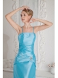 Home >  Bridesmaid Dresses >  Elegant Bridesmaid Dresses > Aqua Blue Column Straps Beading and Ruch Bridesmaid Dress Floor-length Satin