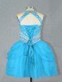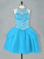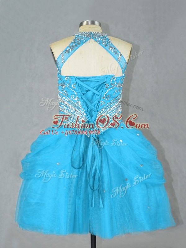 Aqua Blue Dress for Prom Prom and Party with Beading Halter Top Sleeveless Lace Up