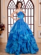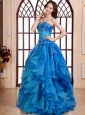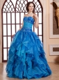 Home >  Quinceanera Dresses >  Unique Quinceanera Dresses > Aqua Blue Embroidery Biduce and Ruffles For Quinceanera Dress