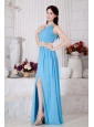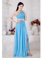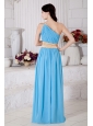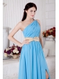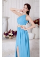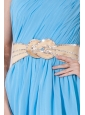 Aqua Blue Empire One Shoulder Belt Prom / Evening Dress Floor-length Chiffon