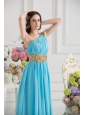 Aqua Blue Empire One Shoulder Floor-length High Slit Prom Dress