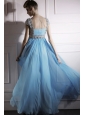 Aqua Blue Empire Square Floor-length Chiffon Beading Prom Dress