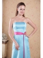 Aqua Blue Empire Strapless Brush Train Dama Dresses For 2013