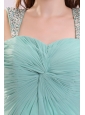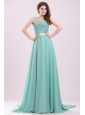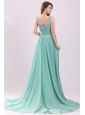 Aqua Blue Empire Straps Beading Green Chiffon Prom Dress with Brush Train