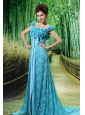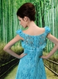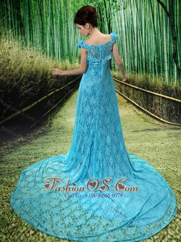 Aqua Blue Flowers Decorate Mother of the Bride Dress With Lace Sequare Neckline