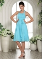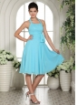 Aqua Blue Halter Sash Chiffon Dama Dresses For Quinceanera Knee-length