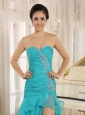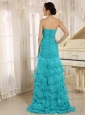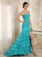 Home >  Special Occasion Dresses >  Dama Dresses for Quinceanera > Aqua Blue High Slit Organza Ruch and Ruffled Layers Decorate Dama Dresses for Quinceanera In Arizona Addison