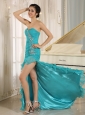 Shine like the stars in this dazzling, sexy strapless prom dress. An elegant long dress for prom or formals features a slim fitting bodice with a sweetheart neckline and exquisite appliques accent. It is completed with a flowing skirt with front slit and a zipper up on the side. A plethora of ruffles creates a unique look on the floor length skirt. Wearing this dress, you are surely will be a red-carpet winner.