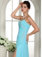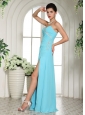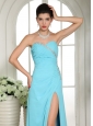 Aqua Blue High Slit Sweetheart Beaded Ruch 2013 Prom Dress For Formal Evening