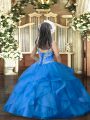Aqua Blue Lace Up Child Pageant Dress Beading and Ruffles Sleeveless Floor Length