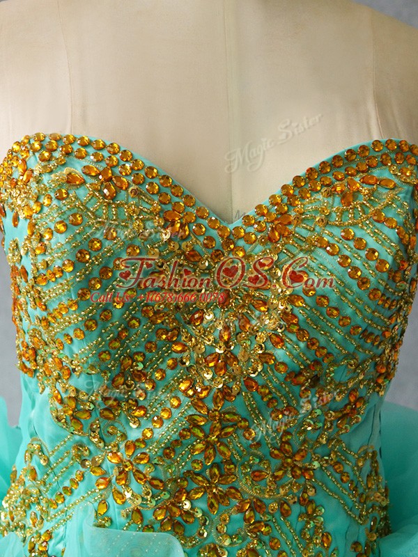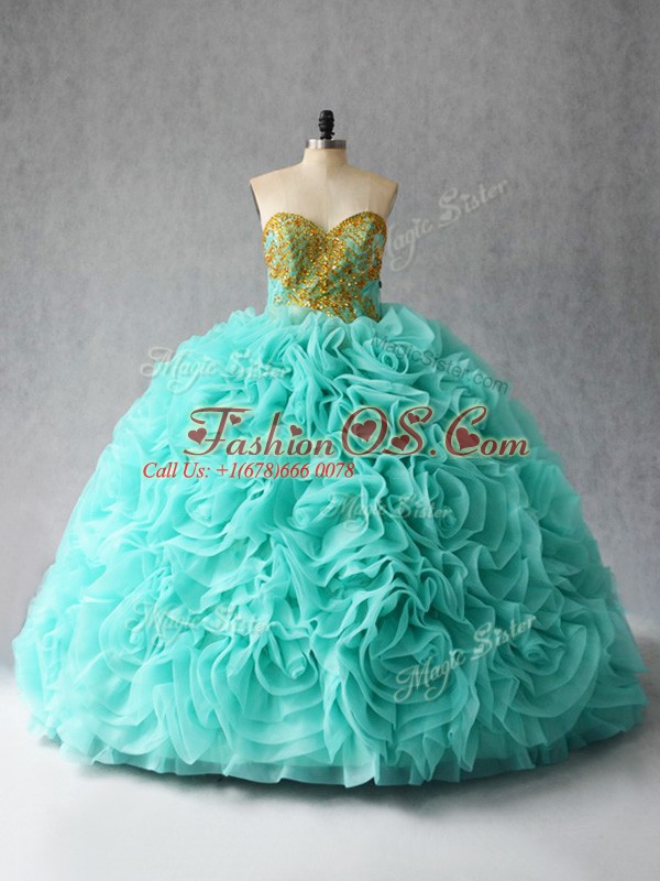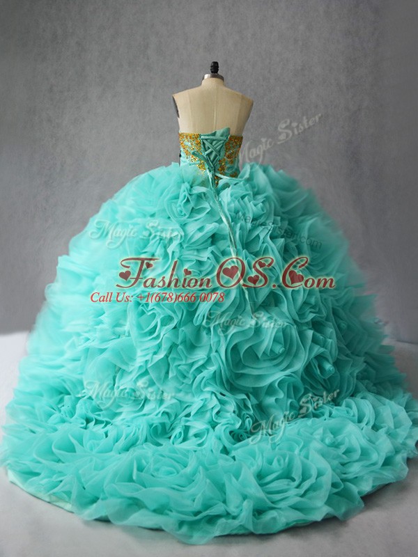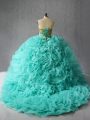 Aqua Blue Lace Up Quinceanera Gowns Beading and Ruffles Sleeveless Court Train