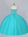Aqua Blue Lace Up Sweetheart Beading Sweet 16 Dresses Tulle Sleeveless