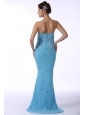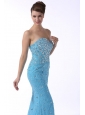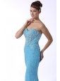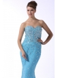 Aqua Blue Mermaid Sweetheart Brush Train Prom Dress with Beading