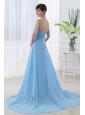 Aqua Blue One Shoulder Beading and Ruching Court Train Prom Dress